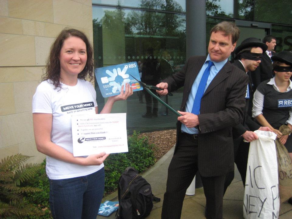 The annual meeting in Edinburgh, attended by only 180 shareholders … was lobbied outside by the Bully-Banks campaign which claims widespread mis-selling of interest rate swap agreement to small businesses.